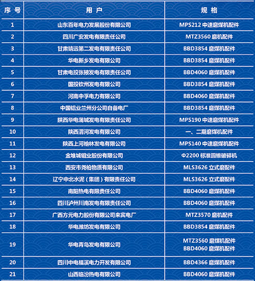 沈陽(yáng)華隆重型電站冶礦機(jī)械有限公司業(yè)績(jī)表(部分)